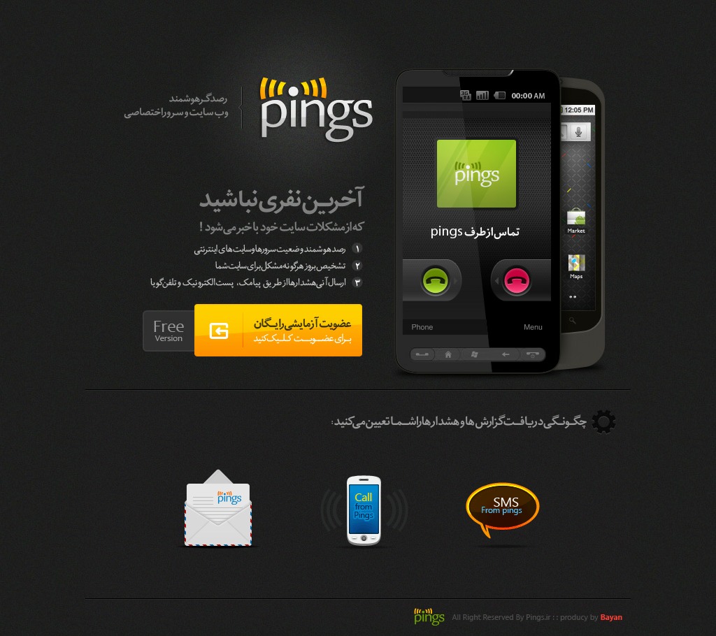پینگز و یا pings یه سرویسی از بیان هست که اگه مشکلی واسه سرور اختصاصیتون افتاده باشه شما رو از طریق پیامک,ایمیل و تلفن گویا با شما تماس گرفته خواهد شد.